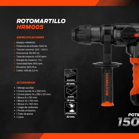 Hamilton Rotomartillo Sdsplus 1500w 7.5j Hrm005
