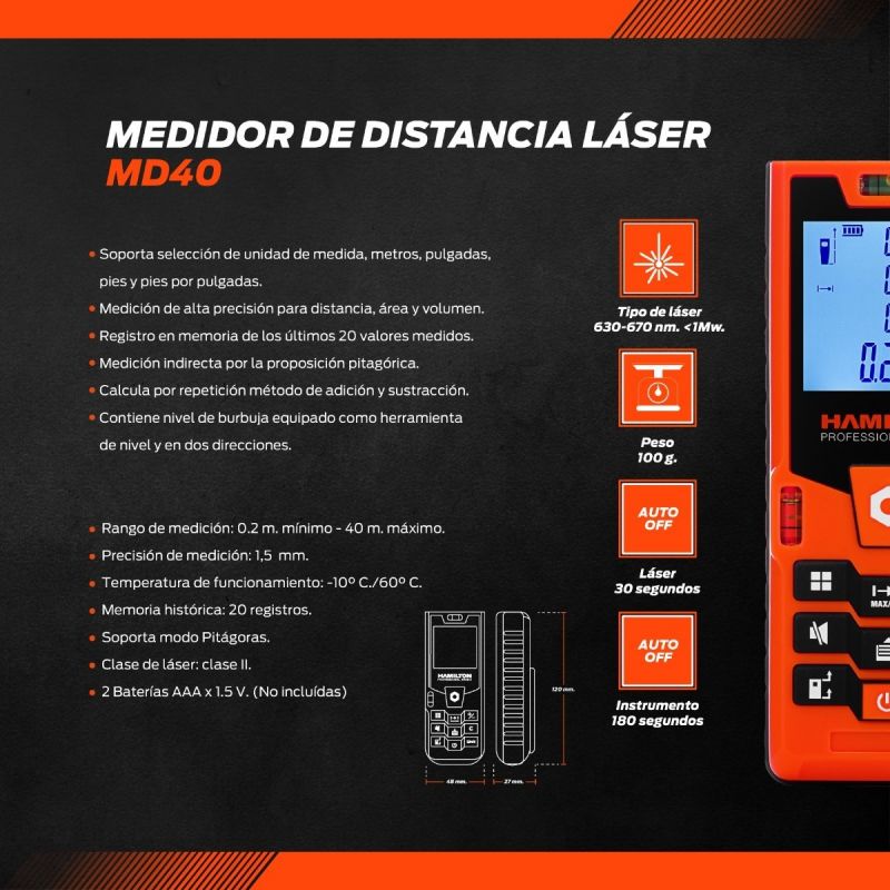 Ham Medidor De Distancia Laser 40 Metros Md40
